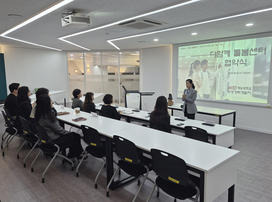 재능대학교와 업무협약식이 있었습니다. i-RISE사업 일환으로 재능대학교에서 개발 중인 초등 늘봄프로그램에 저희 센터도 함께 참여하며 다양한 활동을 누릴 수 있게 되었답니다. 또한 그외 업무의 연계, 서로간의 이익을 증진시키고 기타 기관 발전에 대한 사항을 상호협력 하기로 업무협약을 체결하였답니다.