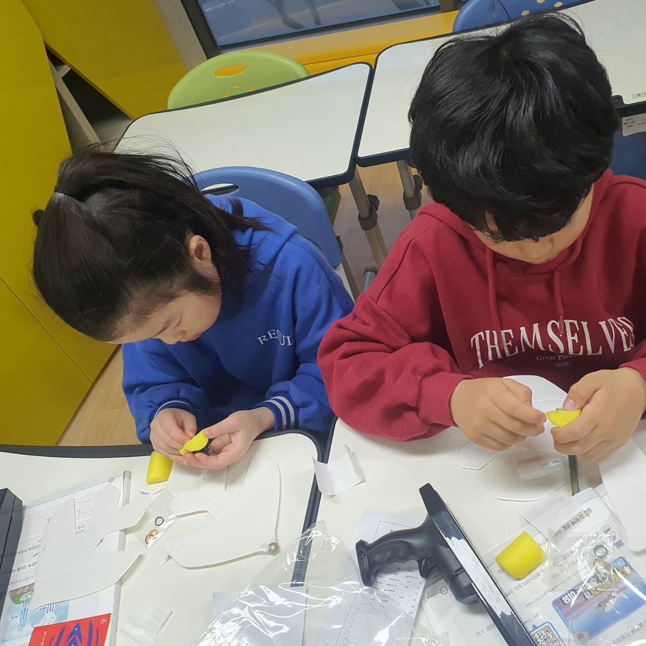 소금물로 그림도 그려보고 화석에 대해서도 알아보고 비행기가 뜨는 원리도 배워보고 큰 다리가 하중을 어떻게 견디는지도 배워보면서 여러가지 과학활동과 만들기를해보며 과학에 대한 원리를 배워가는 아동들 입니다. ^^
