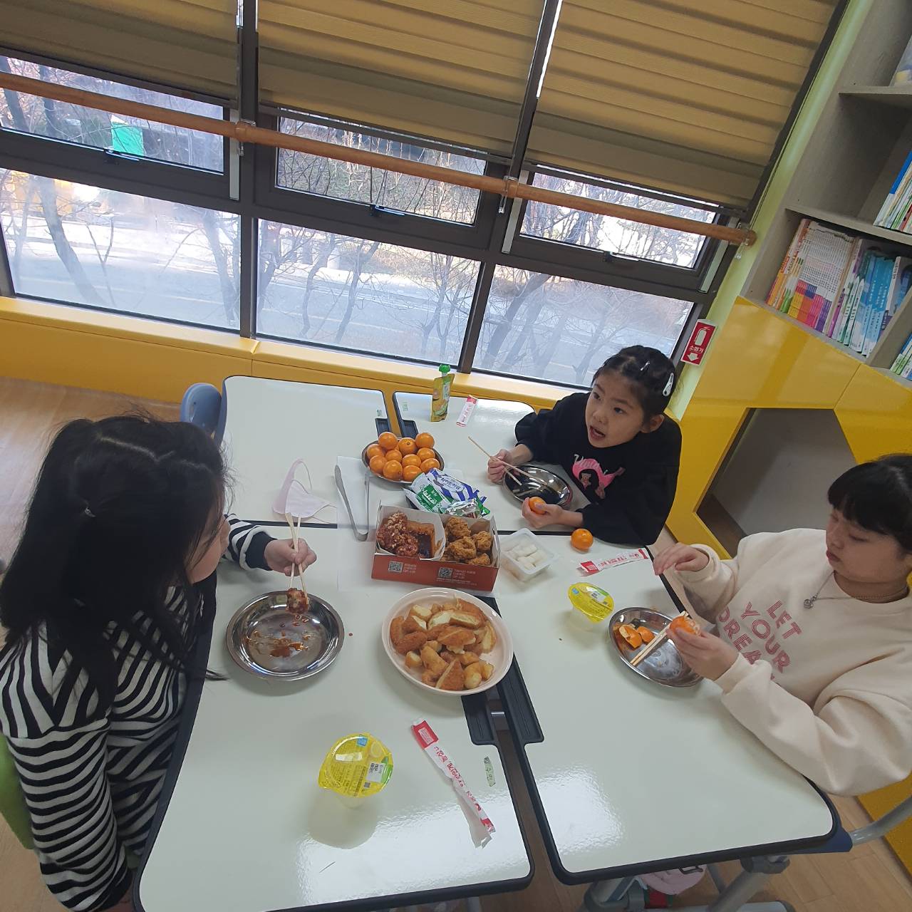 특별간식으로 치킨과 꽈배기,과자,음료수를 맛있게 먹으며 재미있고 즐거운 시간을 보냈습니다..! ^^