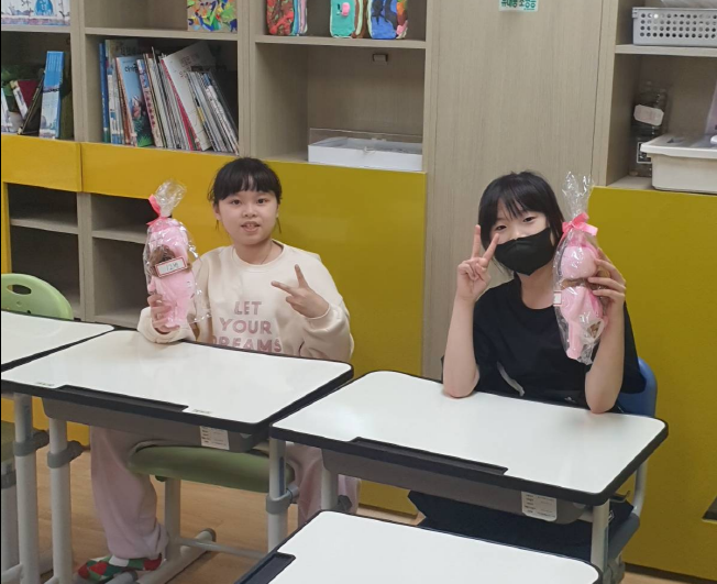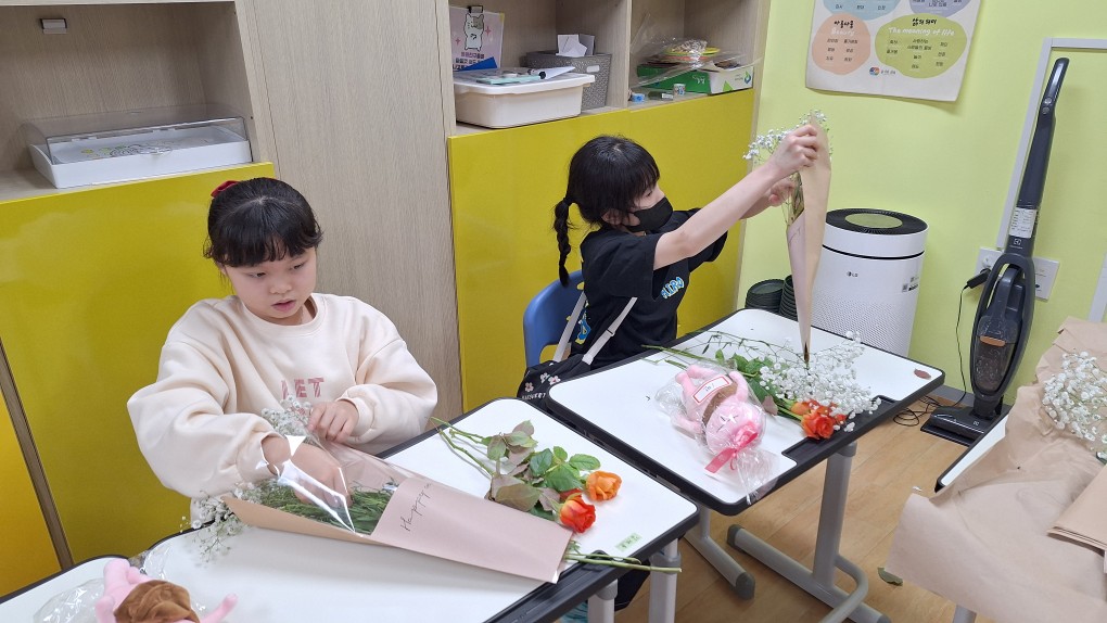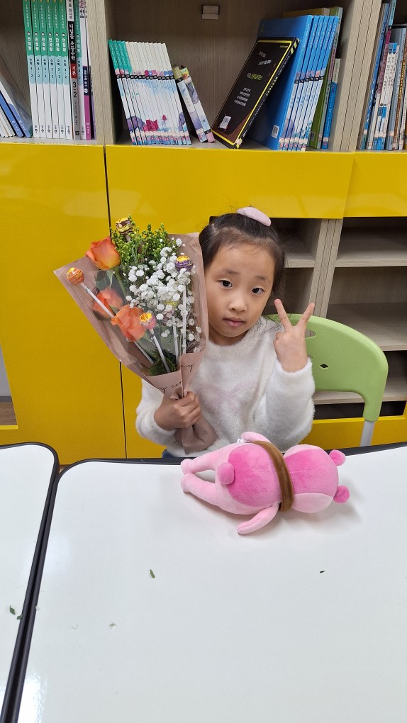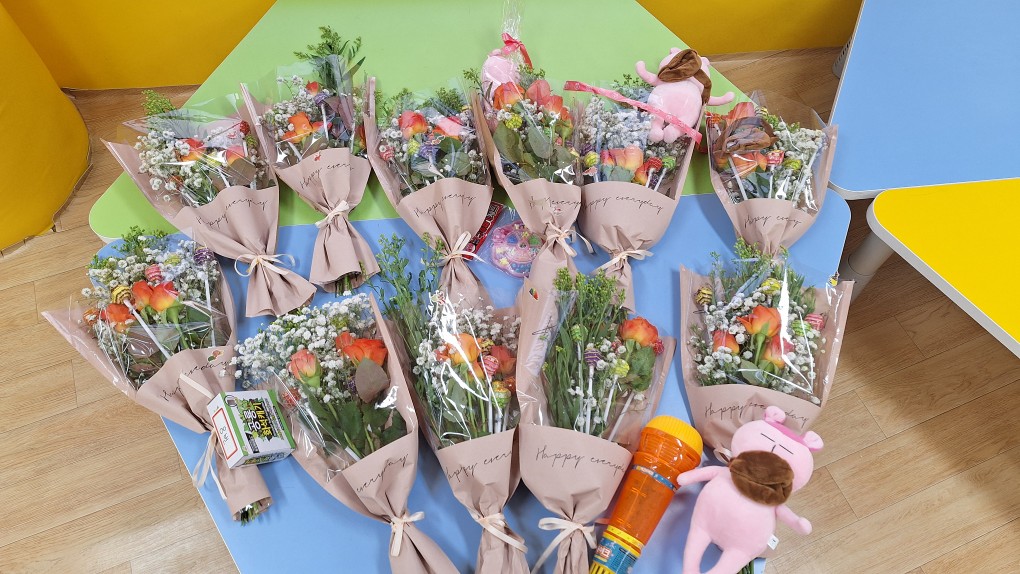 지난번 전소연선생님 송별회 날 아동들이 꽃다발을 만들어 선생님께 선물하였는데요..!