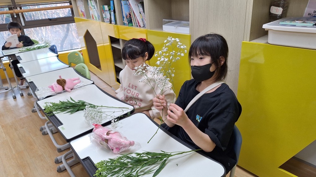 그 때 아동들이 꽃 만지는 것을 재미있어하고 다시 한번 하고 싶어하여