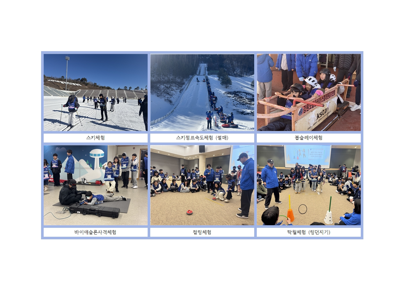 올림픽 기간에 맞추어 올림픽의 역사와 종목을 알아보는 시간과 직접 체험하는 시간을 가졌으며, 소중한 추억을 쌓는 시간이었습니다.